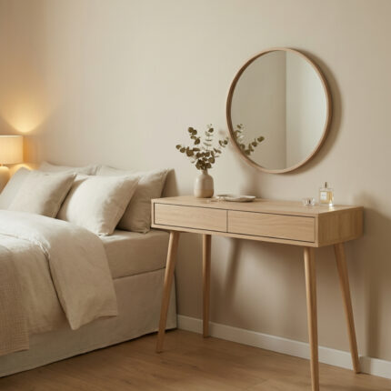 تسريحة أنيقة مزودة بمرآة تضيف لمسة راقية لغرفتك. تصميم عصري يوفر مساحة مثالية لترتيب مستلزماتك اليومية مع مرآة تعكس جمالك