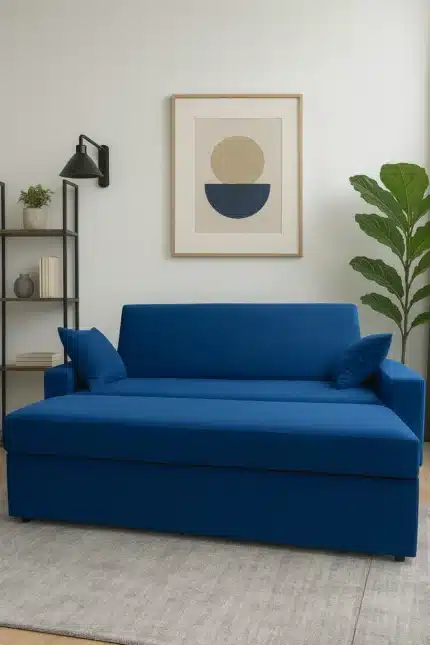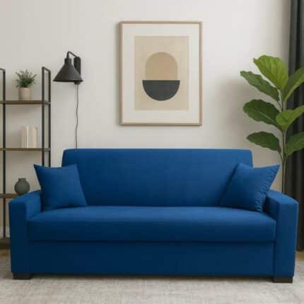 كنبه سرير – خشب زان – قماش كتان – أزرق – 200×90 سم – W-674