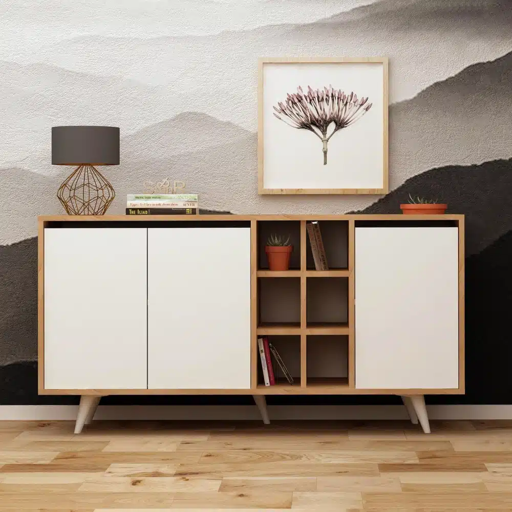 .أضف إلى منزلك مع البوفيه الخاص بنا، مصنوع من خشب عالى الجودة ليدوم معك لفترة طويلة بألوان أنيقة وعصرية ليمنح طابع البساطة لديكورك