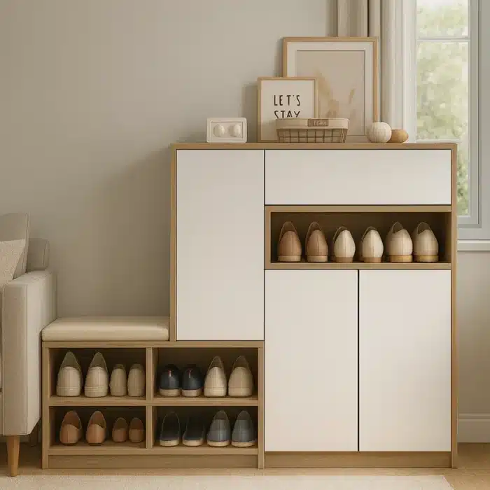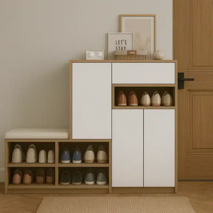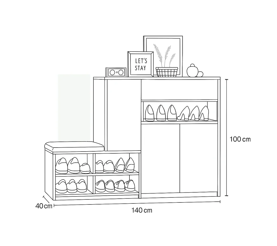 خشب MDF عالي الجودة، مغطى بطبقة من الميلامين الممتاز المقاوم لظروف الطقس، مما يوفر المتانة والمظهر الأنيق.