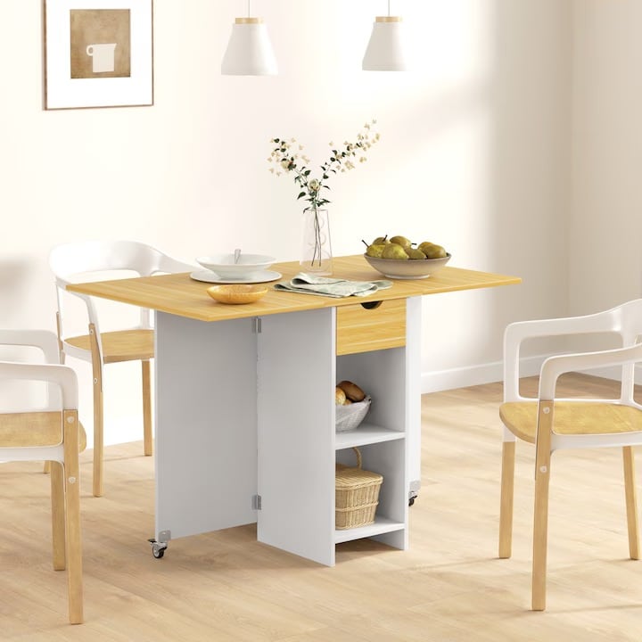 استمتع بحل عملى وأنيق لمشكله المساحات الصغيره ! ترابيزه سفرة من وود واى قابله للطى والفرد تجمع بين التصمصم العصرى والوظيفه الذكيه . يمكن فتحها بسهوله عند الحاجه لتوفير مساحه مريحه عند تناول الطعام ثم طيها واستخدامها ك ترابيزه بسيطه لتوفير المساحه .