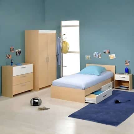 غرفة نوم فردية باللون الخشبي بدولاب كبير – w-614