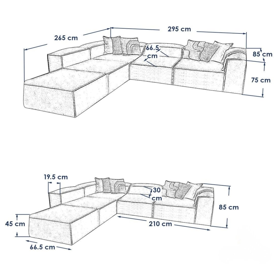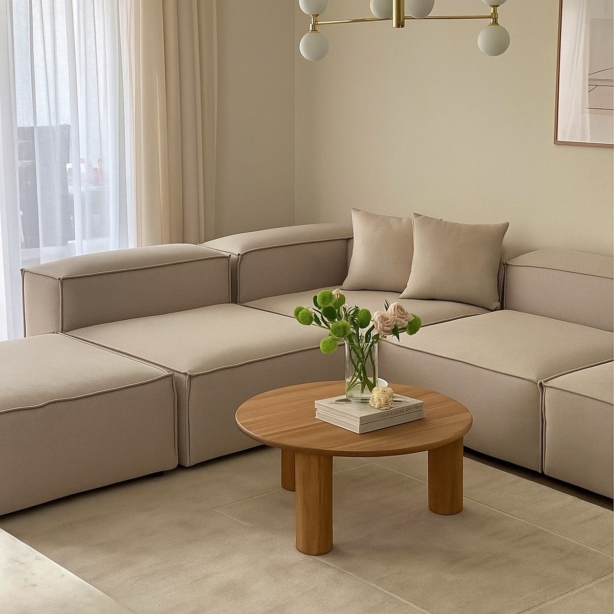 كنبة ركنة و 2 بوف خشب طبيعي و قماش كتان – W-430